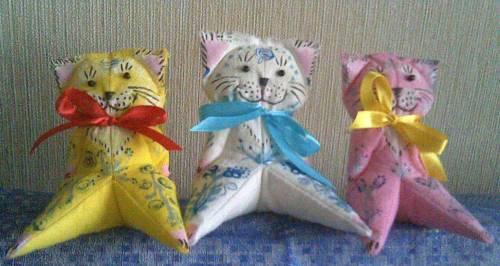 Кот - талисман года 2011. Изготовлен из однотонной байковой ткани и расписан вручную акриловыми красками. Использованы элементы петрикивской и хохломской росписи.